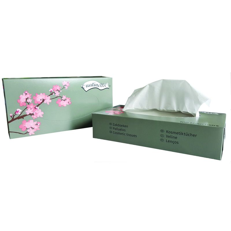 Mouchoirs pure pâte de cellulose vierge qualité extra douce.