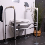 Nos accoudoirs de toilettes Bermudes se disposent autour de votre cuvette de toilettes existantes pour vous aider à vous asseoir et vous relever. Ils sont réglables en largeur en en hauteur pour convenir à tout le monde. Structure en aluminium anti-corrosion et poignées en matériau plastique. 2 pattes latérales se fixent à la cuvette pour garantir une tenue ferme.