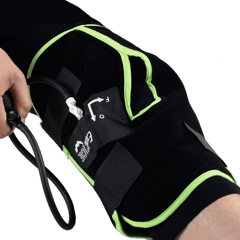 Combine les avantages de la contention et de la cryothérapie. Elle se compose d’une attelle d’immobilisation et d’un pack de froid gonflable au moyen d’une pompe manuelle (fournie). Un jersey en lycra (tissu hypoallergénique et confortable) est également fourni afin de protéger efficacement la peau.