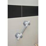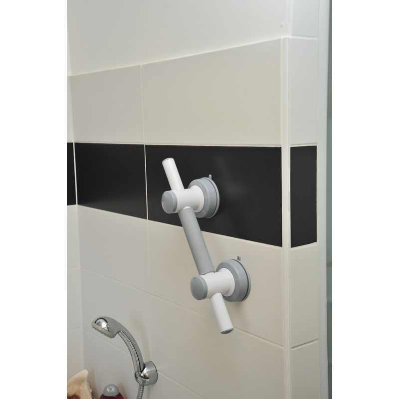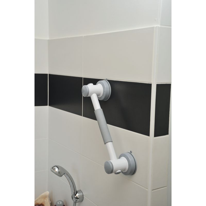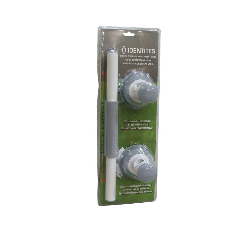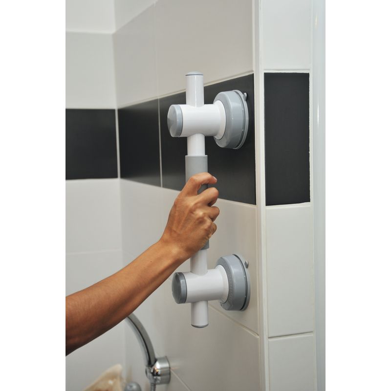 Notre barre à ventouses Vario est ultra-résistante grâce à sa nouvelle technologie de serrage des ventouses. Pour sécuriser la barre, il suffit de faire tourner le support de ventouse jusqu’au clic vous garantissant le blocage. Notre barre est composé de 2 supports qui peuvent coulisser sur le porte-mains afin d’en régler l’écartement, idéal pour ne pas tomber sur un joint de carrelage. Le porte-mains est muni d’une gomme antidérapante durable pour la sécurité et le confort de prise en main.