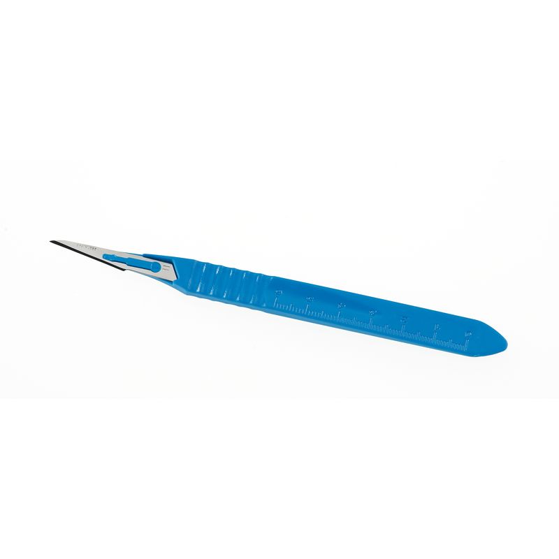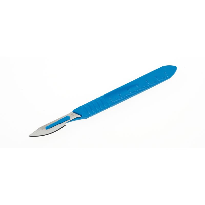 Fabrication à partir d’acier européen. Lame contrôlée au laser. Stérilisation par radiation gamma 2,5 Mega-rads. Sous emballage individuel pelable. Capuchon de protection.