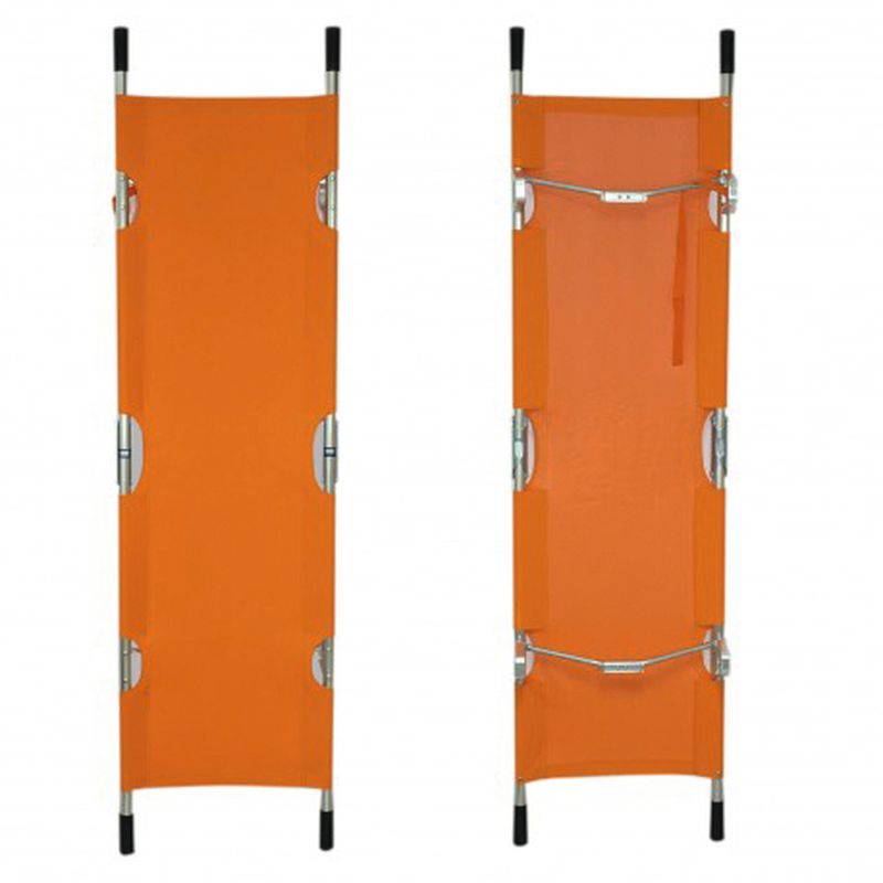 dans le sens de la largeur. Cadre aluminium et toile enduite orange.