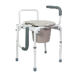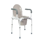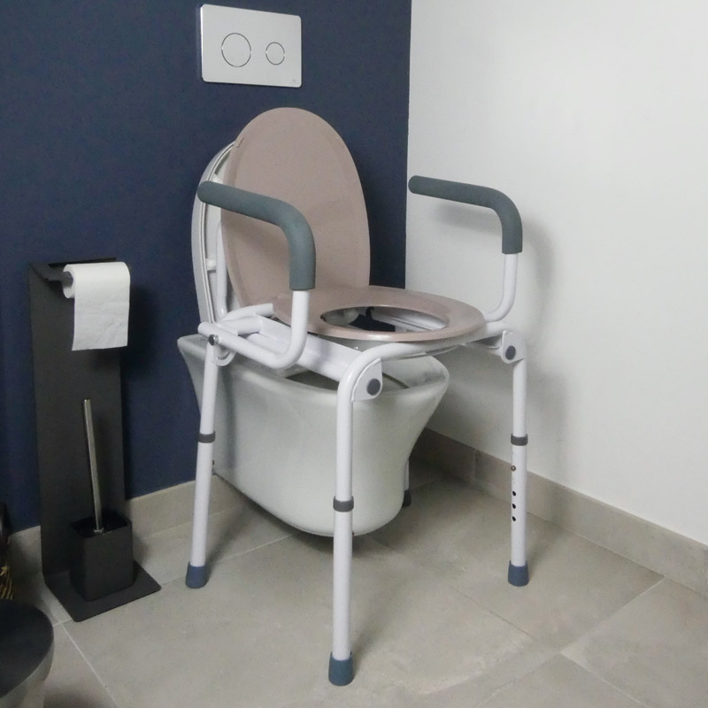 Notre cadre de toilettes Nosy Be permet une utilisation autonome avec le pot fourni, ou au-dessus d’un WC existant. Il dispose d’accoudoirs capitonnés escamotables permettant un transfert latéral facile (escamotage au moyen d’un simple bouton poussoir).