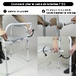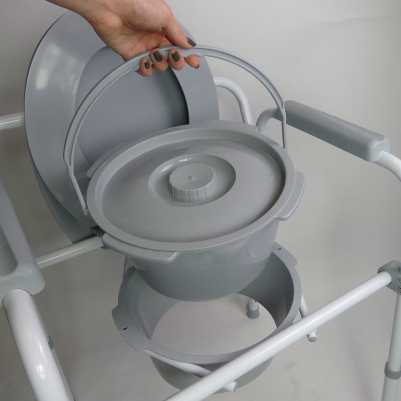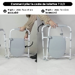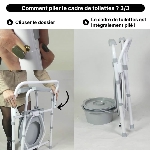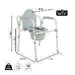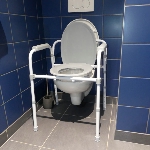 Notre cadre de toilettes Groenland vous permet de vous installer à la hauteur adéquate pour vous relever facilement des toilettes. Utilisable sur une cuvette de toilettes ou seul avec le pot fourni. Il est équipé d’accoudoirs pour prendre appui et d’un dossier. L’ensemble se plie à plat. Livré avec pot avec couvercle amovible par l’arrière. Equipé d’un guide pour le positionner au-dessus des toilettes.