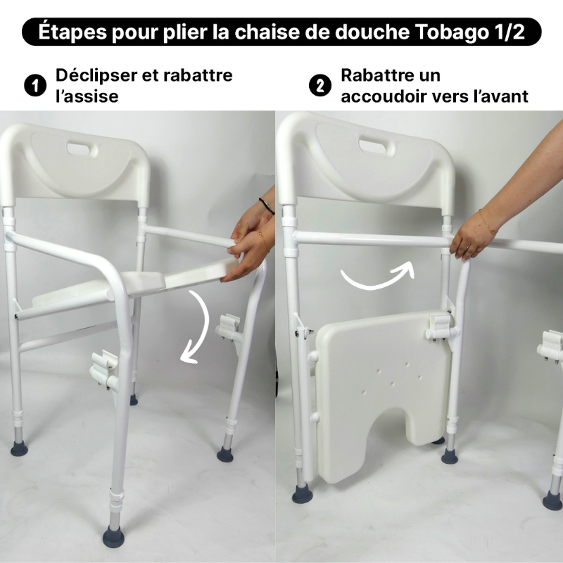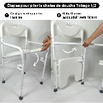 La chaise de douche Tobago permet de vous relaxer pendant votre douche, confortablement assis. Elle est équipée d’une assise anatomique avec une découpe à l’avant pour faciliter l’hygiène intime. Son dossier est équipé d’une poignée de transport très pratique. Elle se range à plat en quelques secondes. Modèle réglable en hauteur.