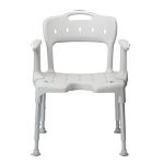 Notre chaise de douche Swift combine de très nombreuses avancées en matière de confort et de fonctionnalité, pour que vous puissiez prendre une douche en toute sécurité, confortablement assis. Le dessin de son assise et de son dossier vous offre une position très relaxante. Ses pieds se règlent très facilement en hauteur. Structure intégrale en aluminium et polypropylène sans risque de corrosion. Pieds en caoutchouc antidérapant.