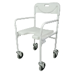 La chaise de douche Tobago permet de vous relaxer pendant votre douche, confortablement assis. Elle est équipée d’une assise anatomique avec une découpe à l’avant pour faciliter l’hygiène intime. Son dossier est équipé d’une poignée de transport très pratique. Modèle sur roulettes avec 2 freins à l’arrière et pliable.