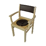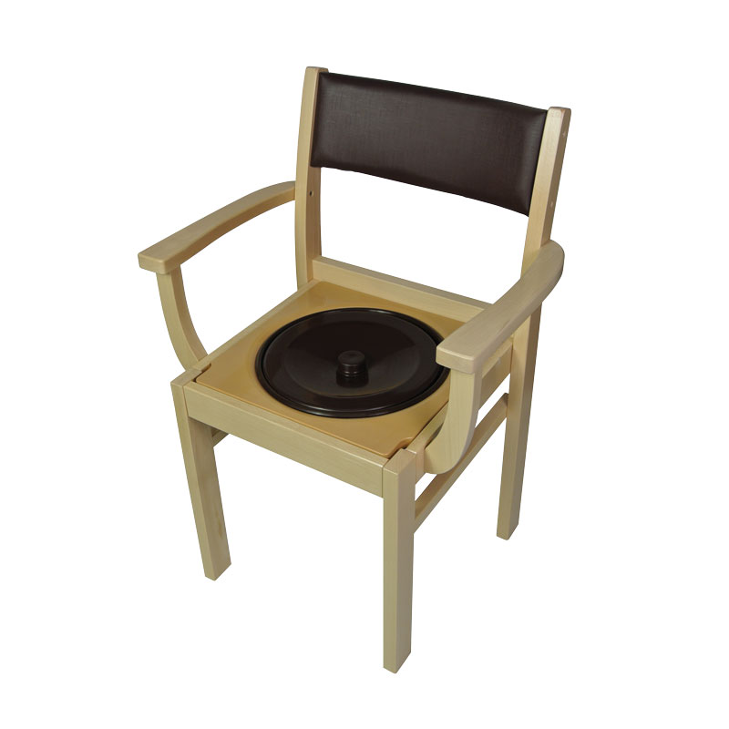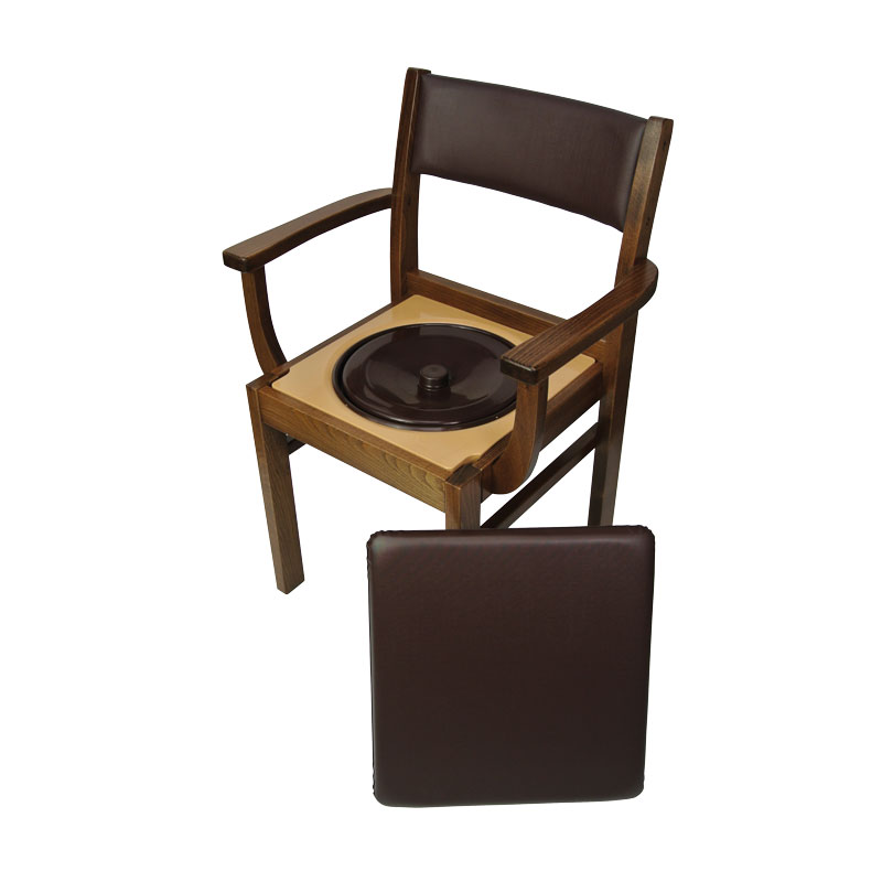 Lorsque la galette de confort est positionnée au-dessus de l’assise percée, il n’y a pas de différence avec une chaise classique. Dossier et assise rembourrée en mousse capitonnée. Seau en PVC amovible par l’arrière.