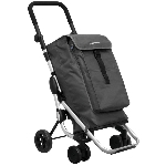 Roues avant multidirectionnelles, poignée de poussée capitonnée réglable en hauteur. Il est équipé d’un sac renforcé de 39,5 l + une pochette isotherme de 6 l sur l’avant. L’ensemble est amovible pour le nettoyage. Système de pliage rapide et compact avec système de sécurité.