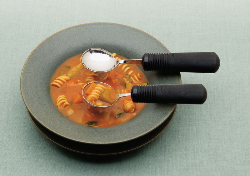 Son manche anatomique en caoutchouc est confortable et antidérapant ce qui facilite la préhension même lorsque le couvert est mouillé. Vous pouvez tordre la cuillère afin de trouver l’angle adapté à vos besoins.