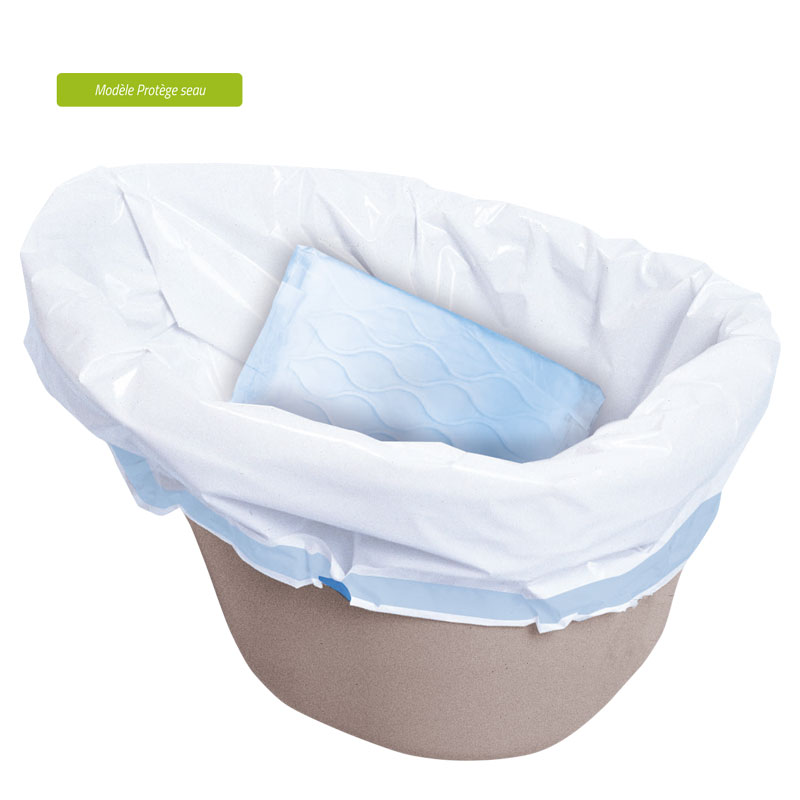 – Protège-seau : Adapté à la majorité des seaux des fauteuil de toilettes.