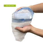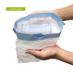 Sac polyéthylène 30μ. Tampon super-absorbant enveloppé alveol-Technology®. Ne perd pas de micro-cellulose ni de poudre dans le sac ou sur la peau. Absorption 600ml.