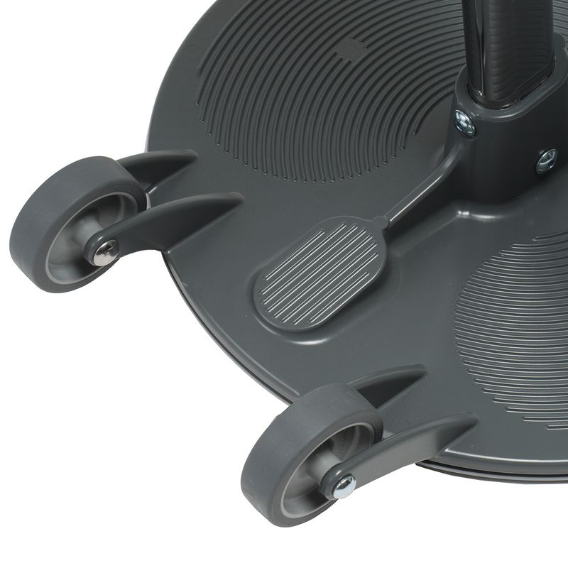 Ce disque de transfert permet un transfert sûr, doux et controlé du patient. Cet appareil unique permet d’opérer des transferts courts avec beaucoup moins d’effort pour le personnel soignant. Il est particulièrement recommandé pour les pivotements entre 2 positions assises (lit à fauteuil, fauteuil à siège de toilettes). Il suffit de placer les pieds du patient sur les tapis antidérapants et ses mains sur la partie inférieure du porte-mains. Le support tibial permet un positionnement confortable et sécurisant. Il pivote sur lui-même à 360°. Système de rangement rapide. Structure en acier epoxy avec coussin tibial en mousse capitonnée imperméable et lavable.