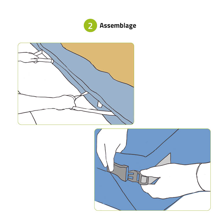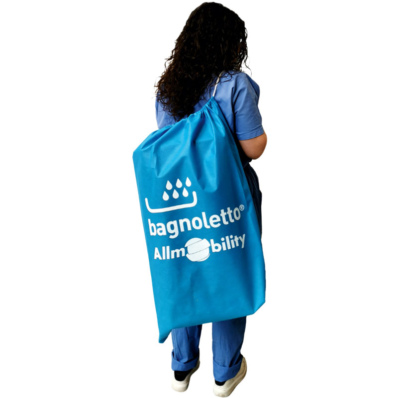 Le Bagnoletto s’installe sous le patient facilement grâce à ses sangles latérales, comme pour un changement de drap. Une fois positionné, les bords se redressent et se solidarisent grâce aux boucles de coin. Le système dispose de plusieurs points d’évacuation de l’eau, il est livré avec 2 tuyaux de drainage et d’un bac récipient.