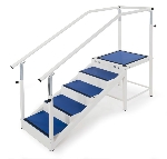 Hauteur main courante réglable de 60 à 100 cm. Dimensions marche : larg. 56 x prof. 30 cm.