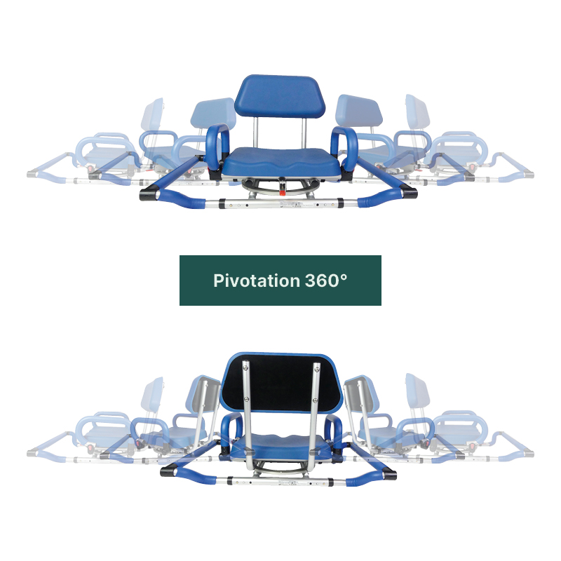 Ce fauteuil de bain pivotant permet de s’installer confortablement grâce à ses parties en mousse imperméable et confortable. Le réglage de la largeur du support permet de l’adapter à la majorité des baignoires.