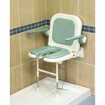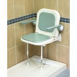 Notre fauteuil de douche Maldives est équipé d’une assise et d’un dossier capitonnés en mousse pour donner un confort d’assise exceptionnel aux personnes à mobilité réduite. Ses accoudoirs relevables sont très utiles pour prendre appui et se relever plus facilement. L’ensemble est relevable au mur afin de laisser la cabine de douche libre pour les autres personnes de la famille. Modèle avec assise pleine. Non destiné à des transferts latéraux répétés. Structure acier inoxydable peint traité epoxy.