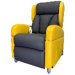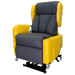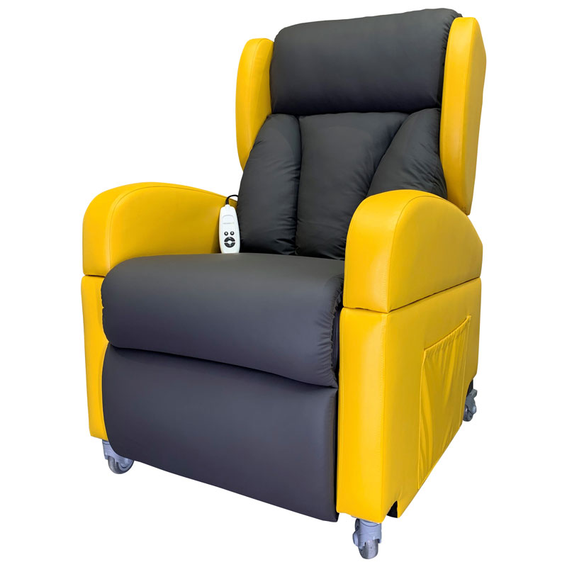 Le fauteuil ProClassic dispose d’une sellerie adaptée à la collectivité, désinfectable à froid et imperméable. Ses accoudoirs amovibles permettent d’effectuer des transferts latéraux plus facilement et à hauteur grâce à son moteur spécialement étudié pour élever et baisser l’assise, en la laissant horizontale. Le second moteur vous permet d’utiliser le ProClassic comme n’importe quel autre fauteuil releveur : version relevé et version relax. Roulettes de déplacement multi-directionnelles à freins, désactivées en version relevé et transfert horizontal. Fonctionnalités adaptées à la collectivité. Sellerie imperméable et classée au feu M3. Accoudoirs amovibles pour un transfert facile