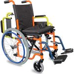 Ce fauteuil roulant manuel est destiné aux enfants. Entièrement pliable, il bénéficie d’accoudoirs relevables, d’une assise fixe ainsi que de repose-pieds rabattables. Côté roues, celle de l’arrière de 51 cm (20’) de diamètre ont une main courante ainsi que des freins. Les roues directionnelles de l’avant sont plus petites avec leur 15 cm de diamètre. Une ceinture est intégrée afin d’assurer un meilleur maintien de l’utilisateur.