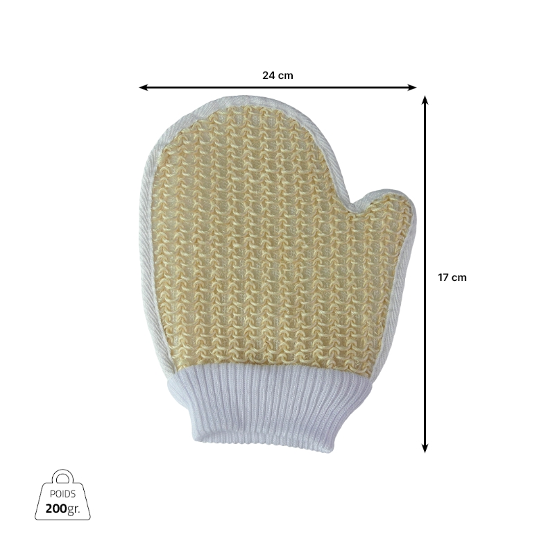 Notre gant de crin exfoliant s’enfile pour débarrasser la peau des cellules mortes. L’autre face coton permet de se laver tout en douceur. Idéal pour le renouvellement cellulaire.