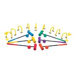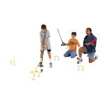 Jeu composé de 6 ensembles maillet + balle de 6 coloris différents, 6 portes auto-stables et 2 drapeaux.