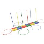 Le kit saut de puce vous permet de construire 2 types de parcours : soit un parcours de haies à différentes hauteurs avec disposition de cerceaux au sol afin de réaliser des courses en sautant à pieds joints ou en courant, soit un parcours d’équilibre de type slalom où les enfants devront, soit le réaliser sans toucher le sol, soit le réaliser en les obligeant à sauter dans les cerceaux éparpillés au sol.