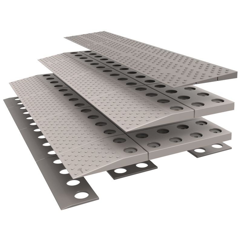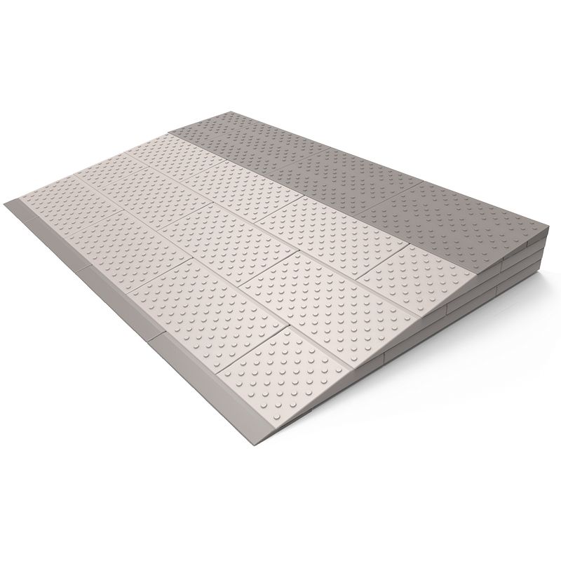 Les rampes d’accès Secucare en kit permettent de créer un plan incliné très facilement. Il suffit de les emboiter simplement avec un maillet. Les kits sont livrés avec une notice de montage détaillée. La largeur du kit est de 84 cm, mais une extension est possible en largeur pour chaque kit de 24 cm pour créer un kit de largeur 108 cm. Résistant même au passage des véhicules. Matériau PEHD résistant aux UV, 95% recyclable gris clair et gris taupe. 4 hauteurs disponibles.