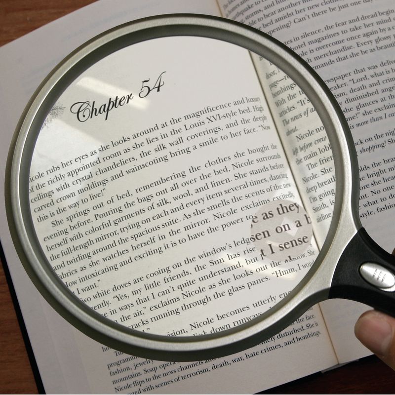 Cette loupe de lecture éclairante est légère et permet de lire plus facilement grâce à sa lentille de 13 cm de diamètre.