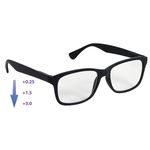 Ce modèle innovant fonctionne comme des lunettes à verres progressifs et offre une vision optimale à courte distance comme à moyenne distance et de loin ! Avec leur transition douce de haut en bas, ces permettent une zone de vision plus flexible que les versions traditionnelles – de +0,25 à +3,0 dioptries dans la zone inférieure. Coloris noir mat, légère et moderne. Livrées avec un étui de rangement noir.