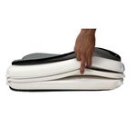 Notre oreiller Vegelya Morpho dispose de 2 modules de surface et d’un module intermédiaire de 2 cm d’épaisseur amovible. Ceci permet de l’utiliser avec 2 hauteurs différentes : 11 ou 13 cm. La hauteur de 13 cm est particulièrement adaptée aux personnes de grande taille ou avec une courbure importante de la nuque.
