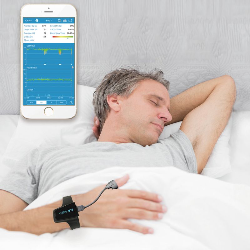 Cet mesure le taux d’oxygène dans le sang, mais aussi les pulsations cardiaques, le nombre de pas journalier et les mouvements durant le sommeil. Affichage de l’heure. Livré avec un capteur souple pour le suivi des apnées du sommeil. Connecté à l’application Check 02 en Bluetooth. Autonomie 8 heures. Batterie rechargeable par câble USB.