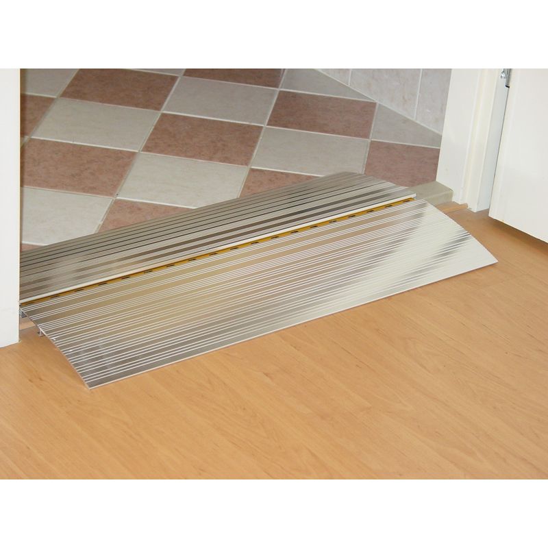 Une petite rampe pratique pour passer les seuils de baies vitrées ou de portes PVC. Aluminium strié antidérapant.