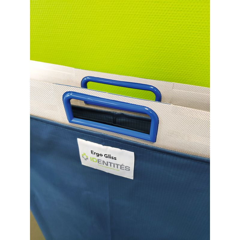 Notre planche de transfert ErgoGliss est composée d’une âme pliable en polypropylène rigide mais très léger, et d’une feuille rotative en nylon très glissant. Elle vous permettra de réaliser des transferts de lits à lits sans aucun effort et sans traumatisme pour le patient. Anti-allergène, imputrescible, anti-bactérienne et classée au feu.