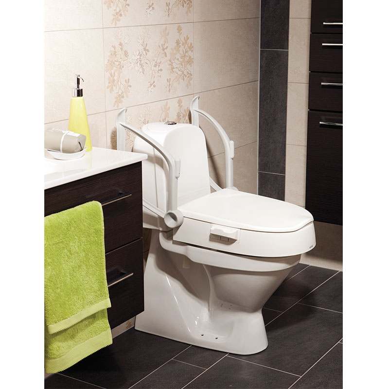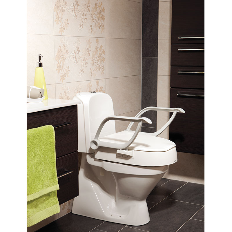 La réhausse WC Cloo est une solution pour les personnes âgées pour s’asseoir et se relever sans effort des toilettes. Il est composé d’une réhausse d’assise et de deux accoudoirs latéraux. Quand on s’asseoit sur une assise haute, il est plus facile de se relever, les accoudoirs permettent de prendre un appui sûr et stable pour s’asseoir et se relever.