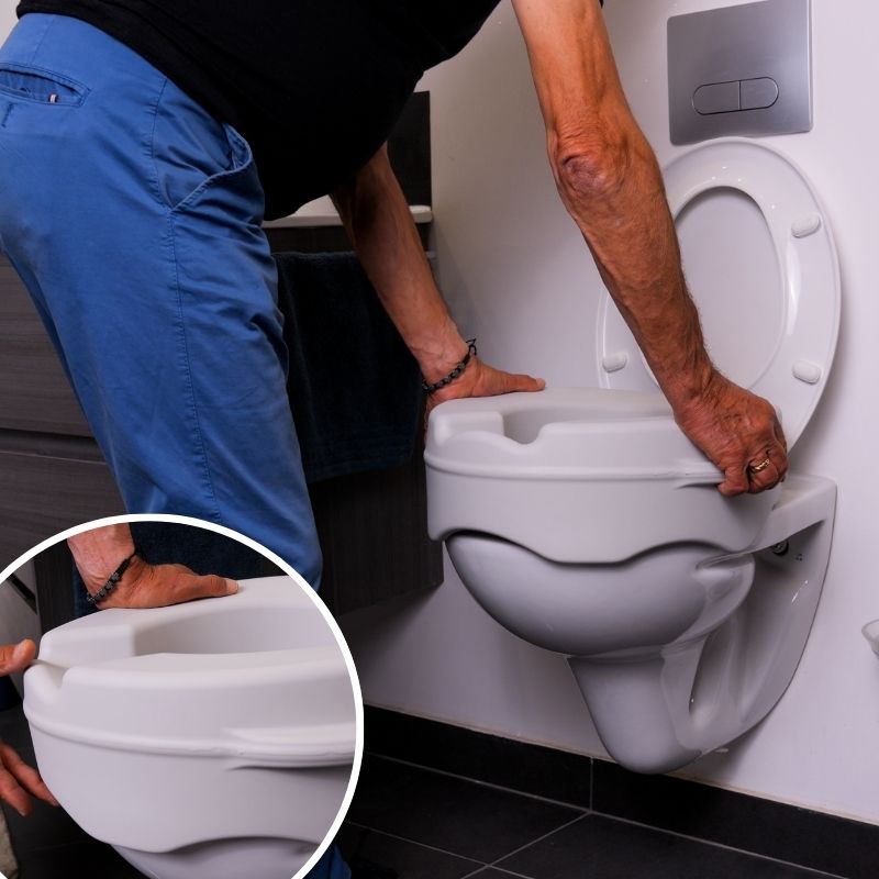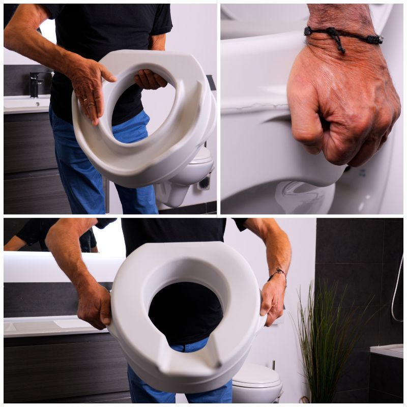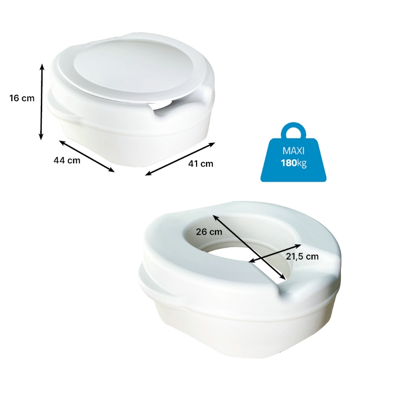 Surface imperméable et désinfectable pour un entretien facile. Rehausse votre cuvette de toilettes existante de 11cm. Gouttières profondes de 45mm pour une tenue sur la cuvette irréprochable. Mousse EVA surfacée imperméable.