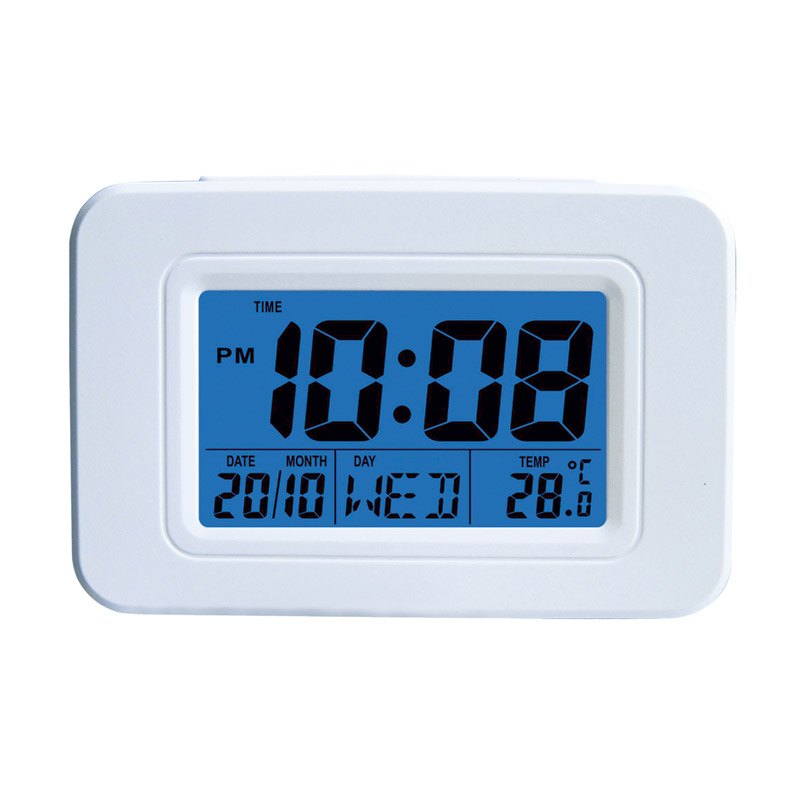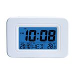 Annonce de l’heure, des minutes et de la température de la pièce en appuyant sur une seule touche (snooze). 3 types de sons d’alarme. Écran LCD rétro éclairé pour une excellente lisibilité de l’heure. Alimentation 2 piles AAA (non incluses).