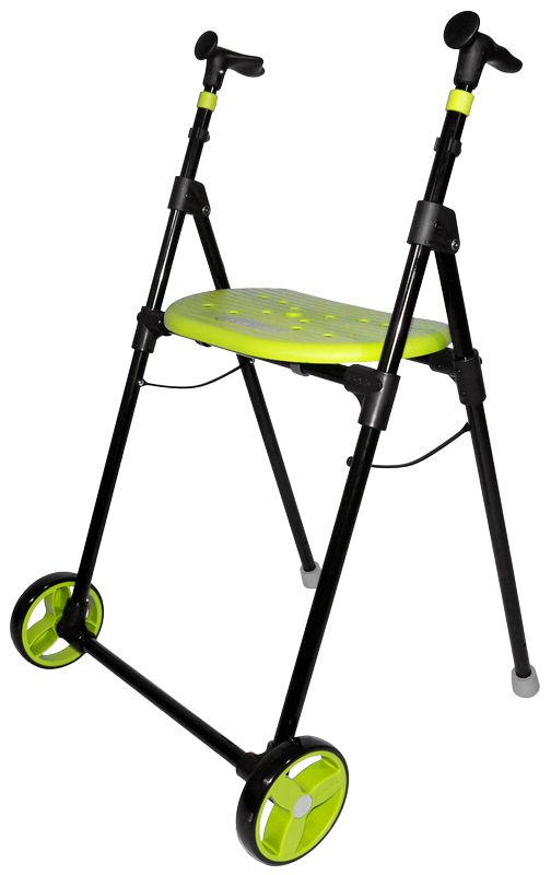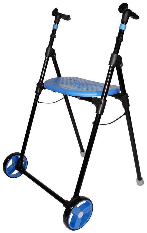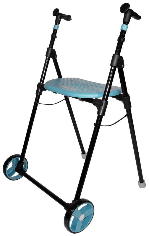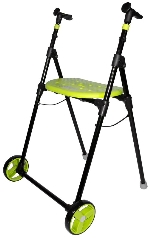 Rollator 2 roues avec siège intégré et poignées anatomiques. Déambulateur doté de 2 roues avant de diamètre 15 cm fixes. Structure pliable en acier et pièces en thermoplastique.