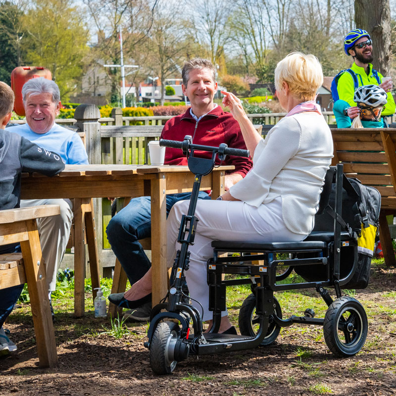 Grâce à son pliage extrêmement facile, seulement en 3 mouvements, le scooter E-Foldi lite vous accompagne facilement en voiture, et même en avion.