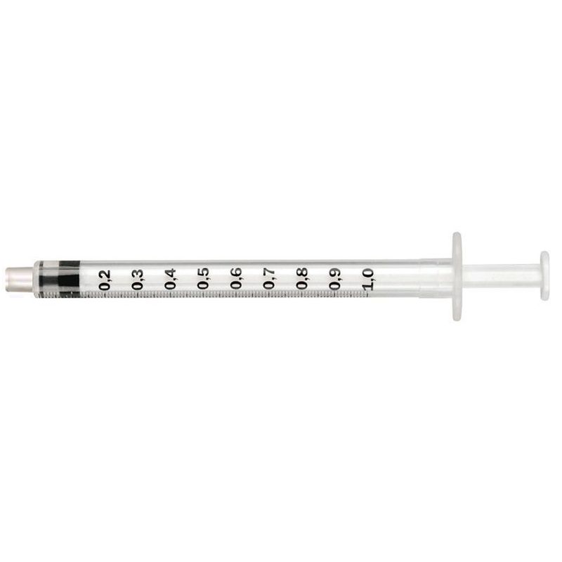 Seringue stérile 3 pièces nue. Polypropylène haute transparence. Piston à triple contact avec dispositif d’arrêt en fin de course. Aiguille unique Pic à haute pénétration. Luer centré.