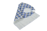 Bavoir esthétique 100% coton motif écossais. Face intérieure barrière en polyester enduit de PVC avec traitement anti-bactérien. Fermeture par 2 pressions.
