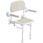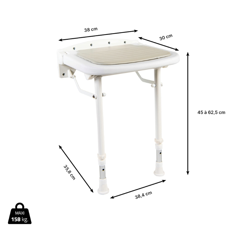 Notre gamme de sièges douche relevables Lagon permet de prendre votre douche en tout confort. Les sièges sont relevables au mur et permettent de conserver l’espace de la douche pour les autres utilisateurs. Pieds réglables en hauteur pour un réglage de hauteur d’assise. Siège en matière plastique avec coussin en mousse imperméable et désinfectable. Accoudoirs relevables également.