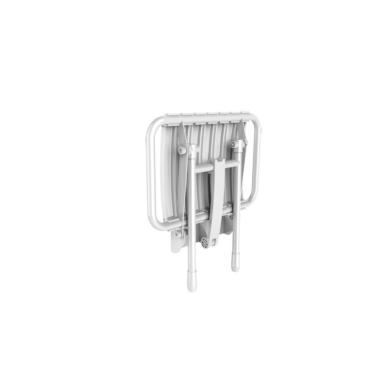 Ce de faible encombrement se relève contre le mur pour faciliter l’entrée et la sortie de la cabine de douche. Il est muni de 2 pieds de soutien pour garantir une sécurité parfaite. Ses poignées latérales facilitent les transferts latéraux. Structure en aluminium anti-corrosion peint à chaud coloris blanc.