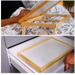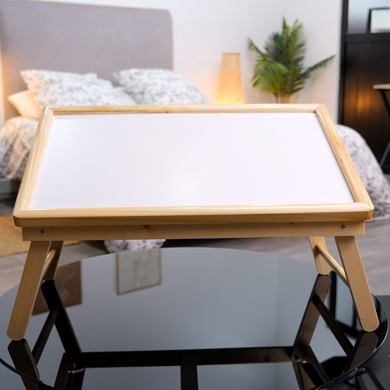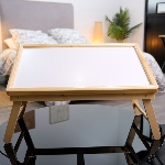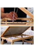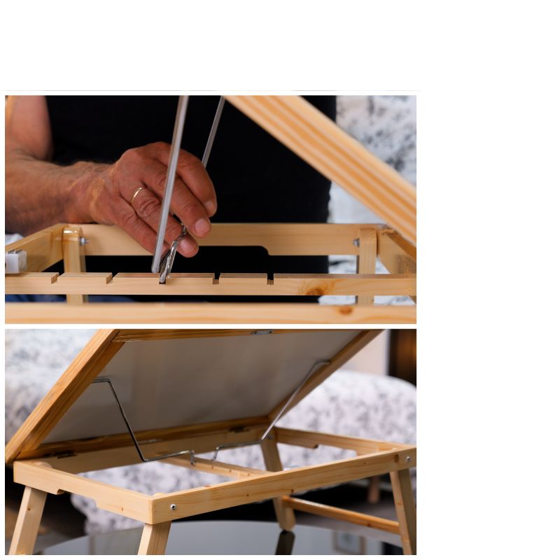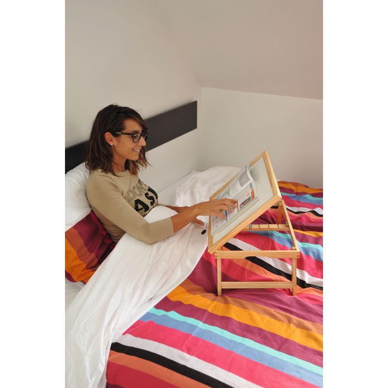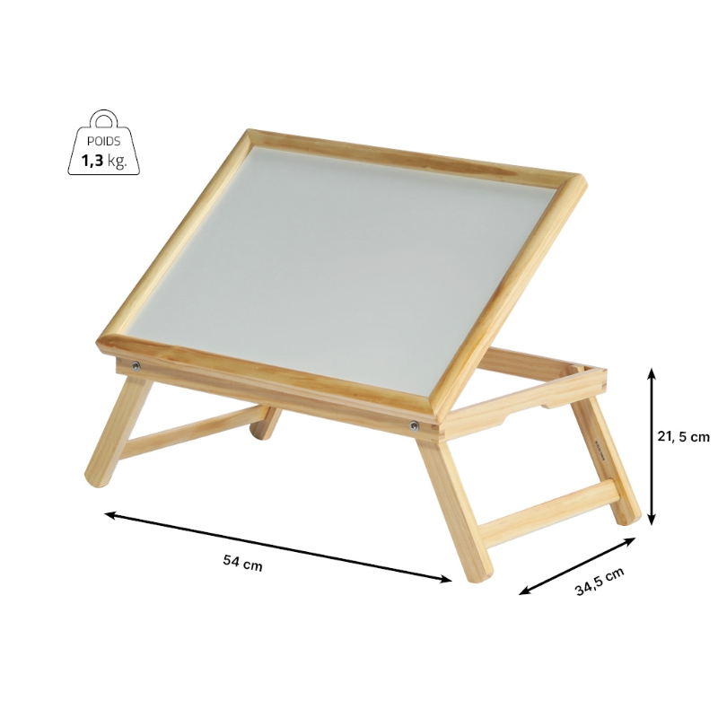 Tablette très pratique pour pouvoir écrire, lire ou manger en position assise ou alitée. Plateau de grande qualité inclinable. Structure en pin massif. Pieds pliables pour le rangement. Inclinaison par crémaillère.