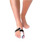 Conformité anatomique. Comprend un coussin de rembourrage pour le 1er doigt. Sangle métatarsienne sur le 5ème métatarsien ajustée pour contrôler la pression de correction.