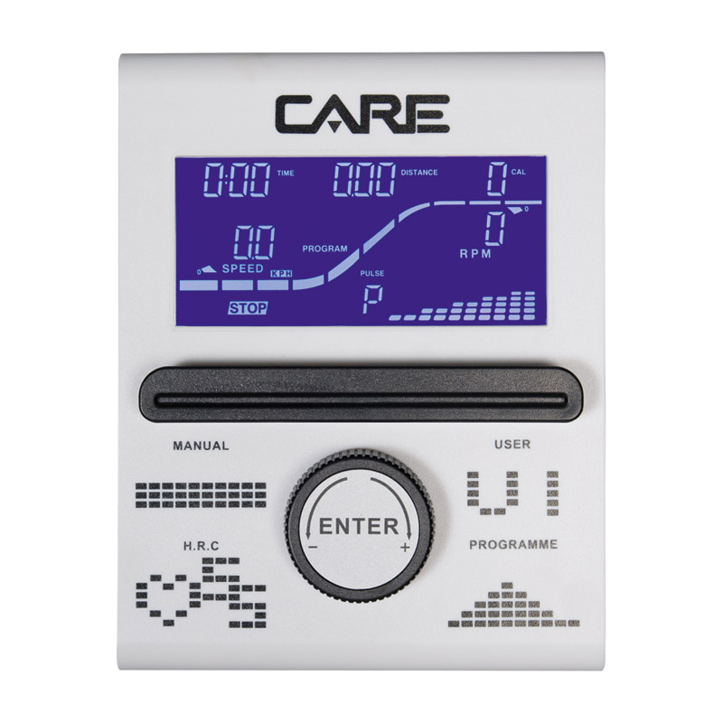 avec un système de freinage aéro-magnétique, avec réglage motorisé 24 résistances. Masse d’inertie 9 kg. Tous réglages de confort de la selle et du guidon. Prise de pouls par capteurs tactiles. Ordinateur à affichage LCD avec bouton unique de contrôle. 24 programmes préétablis.
