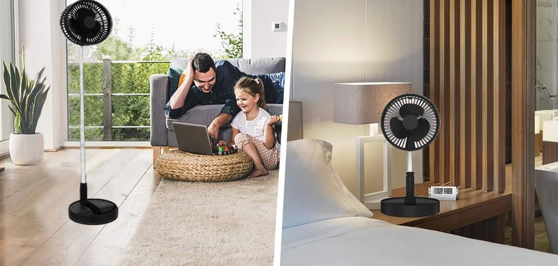 Ventilateur léger avec bras extensible de 36 à 100 cm.