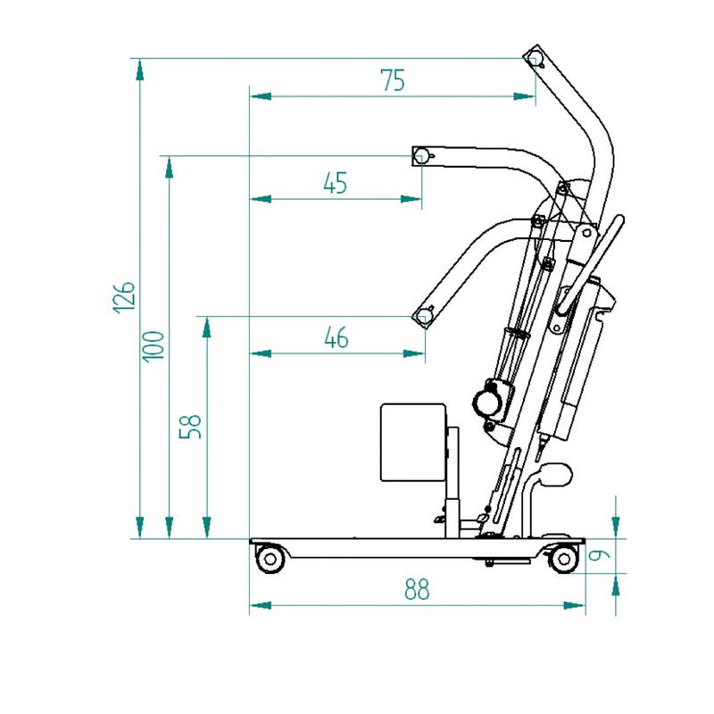 Relevage électrique frontal permettant d’atteindre la position verticale ou semi-assise de manière sûre et confortable. La structure en tubes d’acier peint, combinée à la possibilité d’écarter les pieds de la base au moyen d’une pédale garantit une stabilité et une sécurité maximales lors de l’utilisation. Grâce au harnais lombaire et aux appuis tibiaux rembourrés, ce type de transfert semi-actif est particulièrement adapté aux patients ayant des difficultés à se maintenir en position verticale.